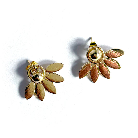Ball Stud Earrings with Leaves Ear Jacket in Gold