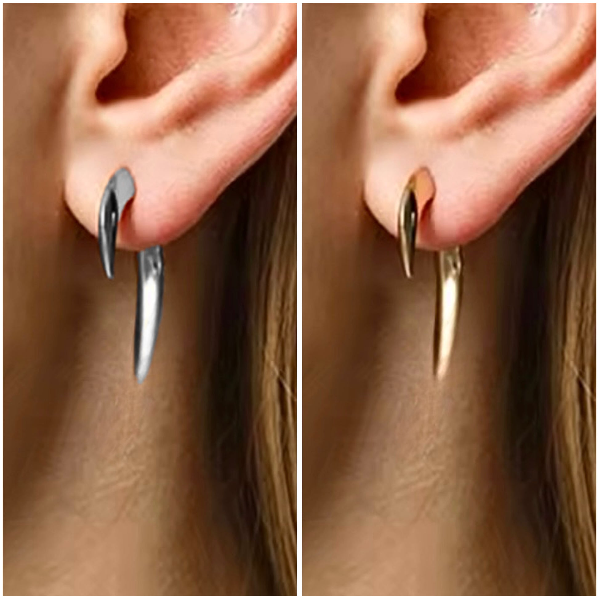 Cool yet discreet shiny silver tone claw shaped earrings that creates an illusion of a gauge piercing.