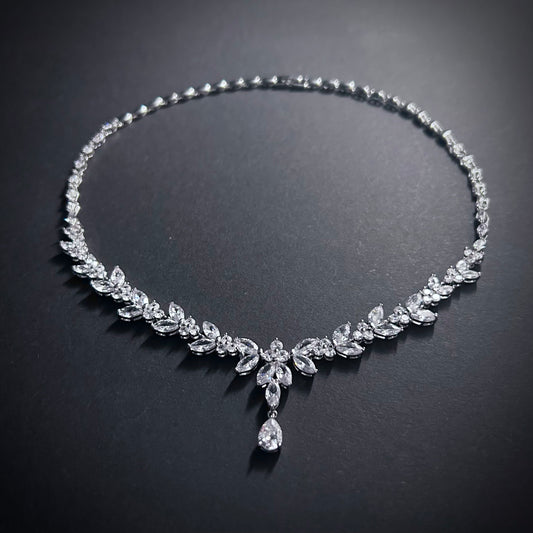 Choker Necklace in Silver with Clear Marquise Cut Cubic Zirconias