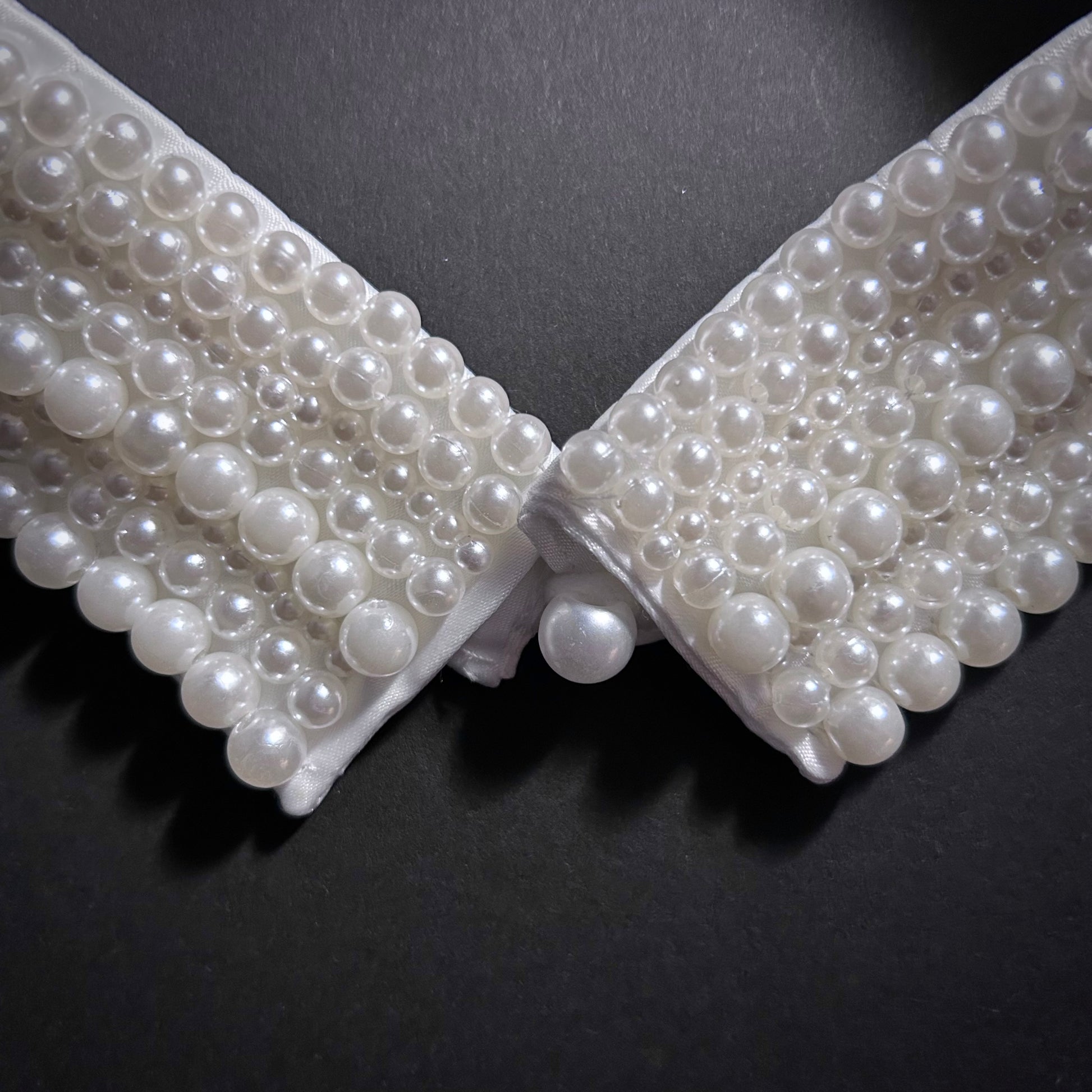 White Pearl Covered Shirt Collar Statement Necklace